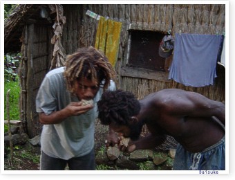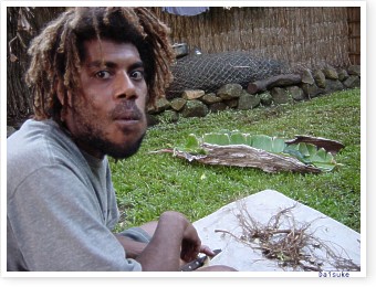 ■今回バヌアツの滞在中に私はさまざまな機会にカヴァを飲んだ。そしてこのダウン系のドラッグが演出する深遠な世界をようやくにして垣間見ることができたと思う。フィジーで飲んだ乾燥した粉のカヴァと違い、バヌアツの新鮮な生カヴァの汁は、その効果といい味といい比較にならないほど強烈なものであった。