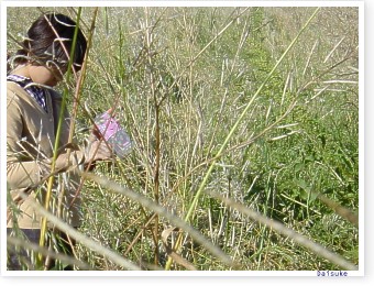 ■さて、大学の近くの紫川の河畔は春になると菜の花が満開になる。この菜の花、正確にはアブラナではなくてカラシナなのである。ちょうどトウがたち種がこぼれはじめたので学生たちと集めに行った。