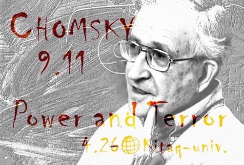 ■さて、すこし先の話ですが、4月26日(土)に映画「チョムスキー9・11」上映を計画しています。場所は北九州市立大学A−101です。 ■私とクラブMHzの立松大介、古書店主の佐藤信之の3人で上映実行委員を組織し、北九大の教員数名の協力をえて、映画上映と講演会を準備しています。