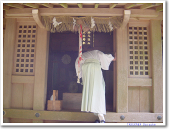 ■若い神官は手早く着替えると、神と交感する仲立人の顔になった。かしこみかしこみ、もぉーすぅー。海のすなどり(素魚獲)人の豊穣と国家国民の安寧をひととおり祈ったあと、私のかしらの上におおぬさを二度三度と振りかざす。禊ぎをしたうえにお祓いである。ふだんから神仏とは無縁で初詣にすらいったことのないアニミズム信者の私は、この生命あふれる森の中で、生誕以来たまりにたまっていた穢れを強力にクリーニングしてもらったわけある。